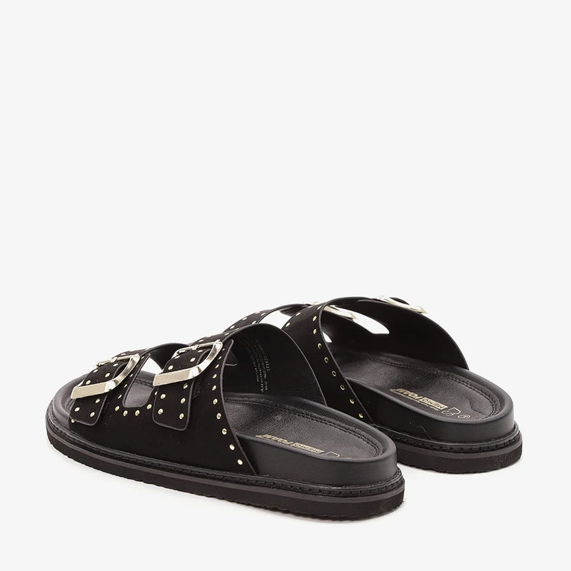 נעל קלהמחפשת נעלי נשים שמשלבות אופנה ונוחות? הכפכפים השחורים האלה הם הבחירה המושלמת! עם עיצוב טרנדי הכולל אבזמים וניטים מוזהבים, הם משדרים יוקרה ומשתלבים בקלות עם כל לוק. סוליה רכה ומרופדת מבטיחה לך נעליים נוחות לכל שעות היום, לעבודה, לבילוי או לבית. פריט חובה בכל ארון נעליים! זמינים עכשיו במידות 36-41.