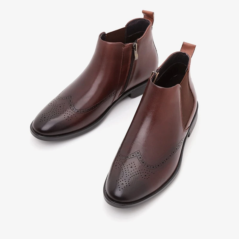 מגפיים לגברים אלגנטיים M1822756 קפה מבית Franco Bane. עיצוב איטלקי קלאסי, עור משובח, סוליה גמישה ומדרס היברידי לנוחות מרבית. המגפיים מושלמים לכל אירוע ומציעים מראה יוקרתי ומרשים לכל אירוע בסטייל ונוחות בלתי מתפשרים.