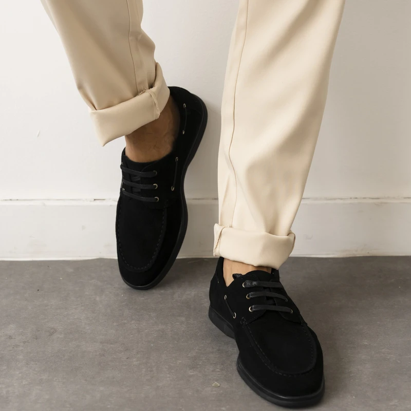 נעלי מוקסין לגברים 1111 שחור מבית Franco Bane – נוחות וסטייל בלתי מתפשרים. עשויות זמש איכותי, עם סוליה רכה ומדרס היברידי תומך. מושלמות לכל שעות היום, משדרות אלגנטיות וביטחון.