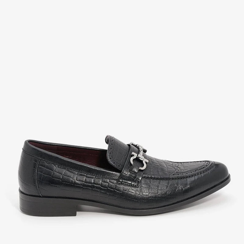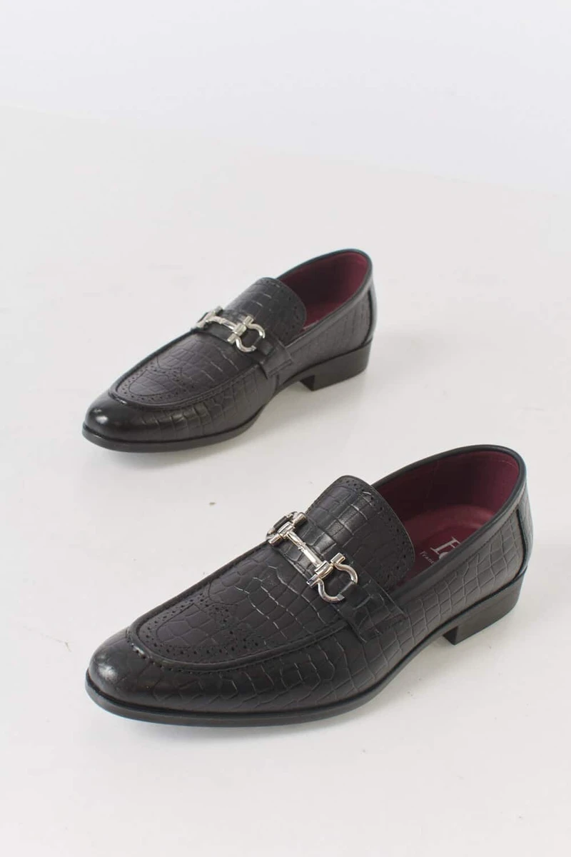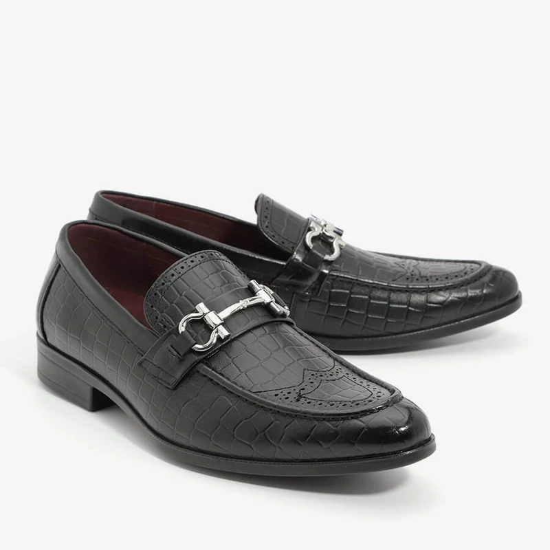 נעלי סירה שפיץ ללא שרוכים עם אבזם כסוף.