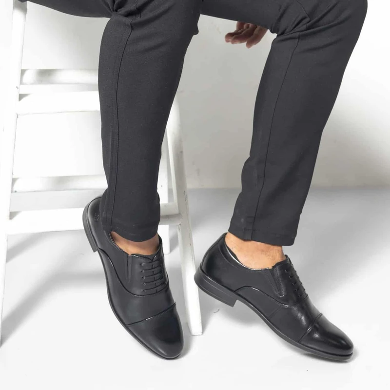 נעלי עור שחורות בעיצוב איטלקי קלאסי, מושלמות לכל אירוע. המדרס ההיברידי התומך מבטיח נוחות לאורך כל היום. נעלי אלגנט חרטום מעוגל ותפר, ללא שרוכים