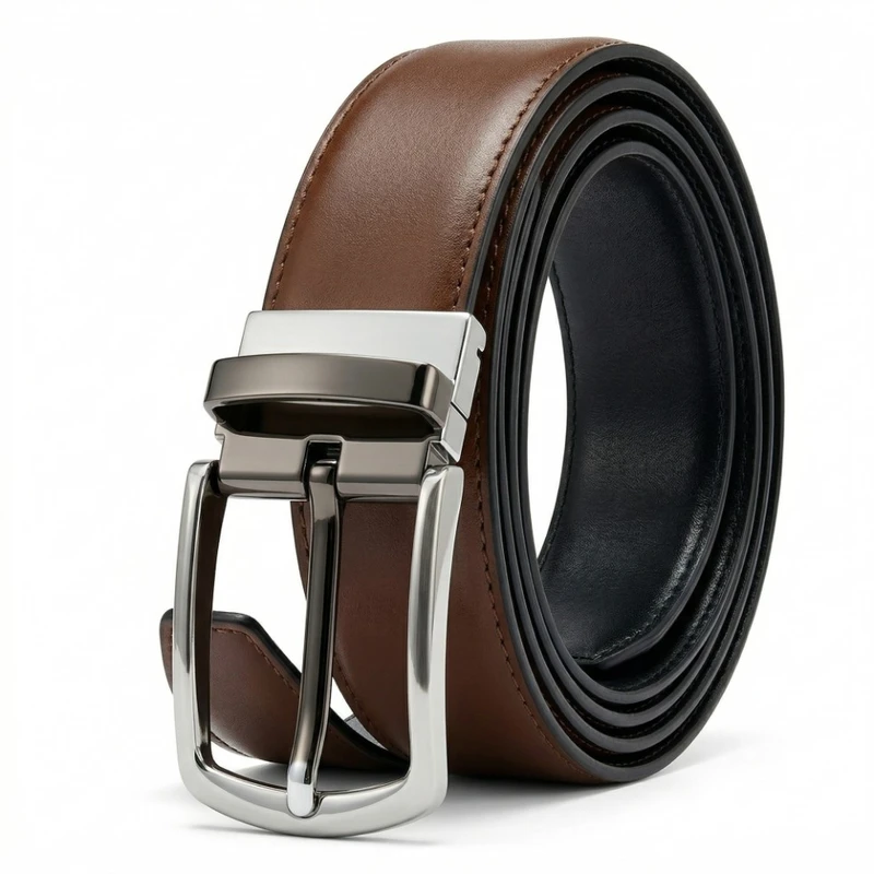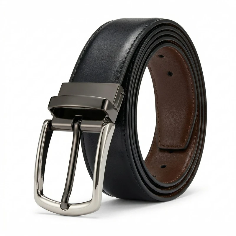 חגורת עור אבזם דו-צדדית שחור / חום קלאסי