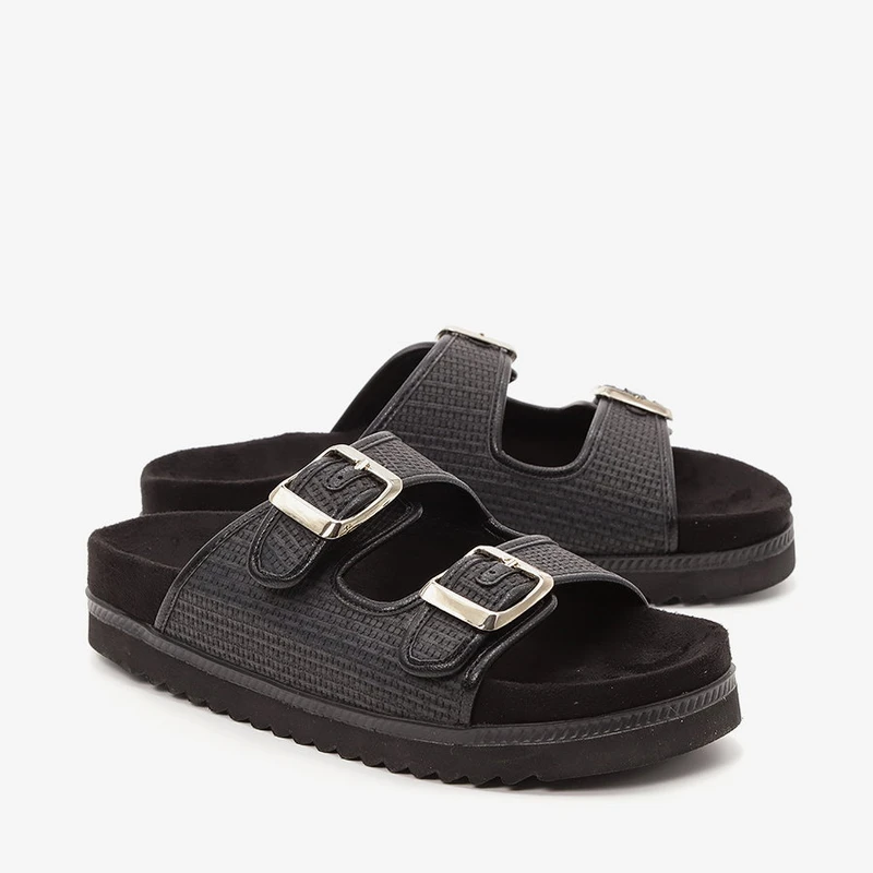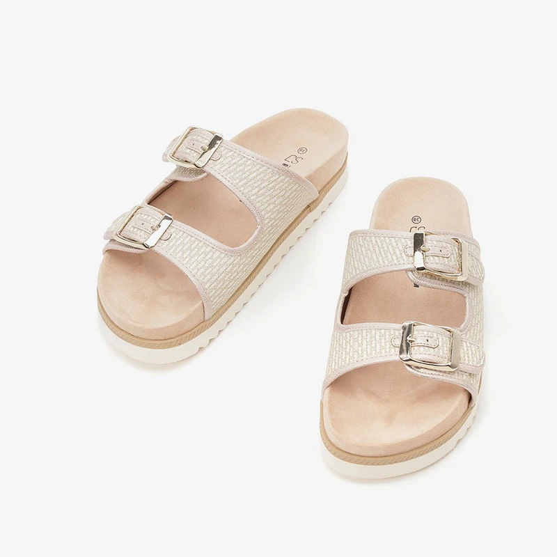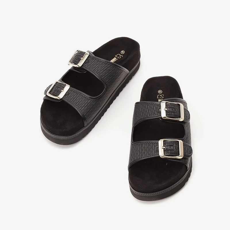 כפכפי נשים בעיצוב טרנדי עם אבזמים כפולים, משלבים נוחות מקסימלית עם סטייל עדכני.