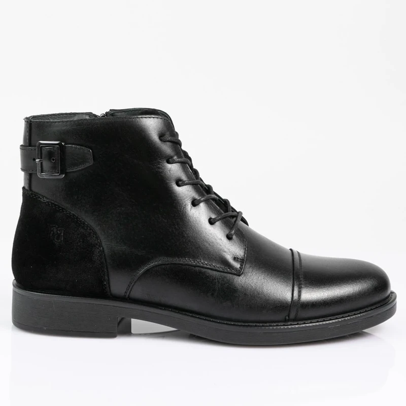 מגפי עור שחורות בעיצוב קלאסי עם גימור זמש שחור. סוליה גמישה ומדרס היברידי תומך לנוחות מירבית. מושלמות לכל אירוע, מבטיחות מראה מסוגנן ונוחות לאורך כל היום. הזמינו עכשיו!