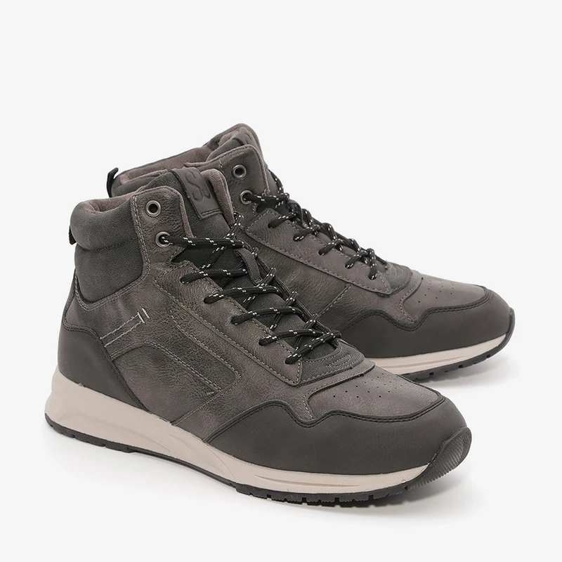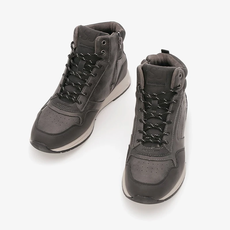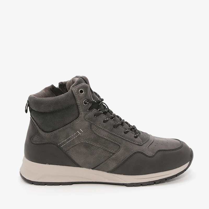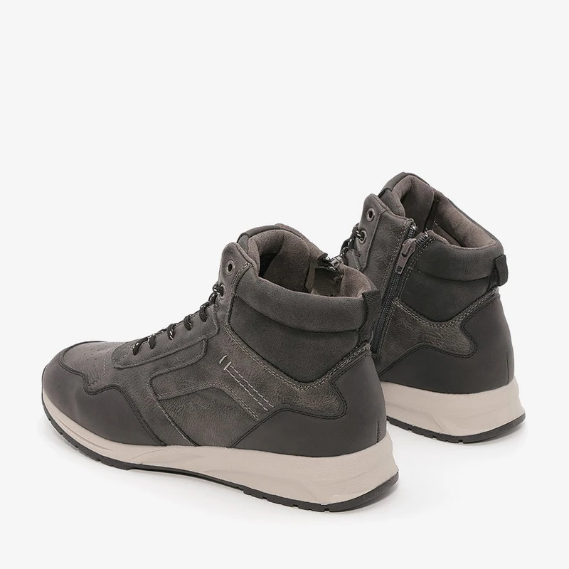 מגפונים לגברים בשילוב גוונים אפורים וכחולים וסוליה לבנה, מגפיים אופנתיות וקלות מעוצבות בסטייל צעיר ונוח.