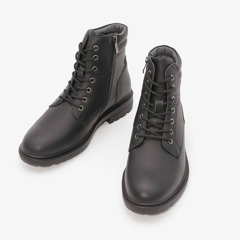 מגפיים לגברים 232327 שחור מבית Franco Bane – שילוב מושלם של סטייל ונוחות. מעוצבים בסגנון קלאסי, המגפיים עשויים מעור משובח, עם סוליה גמישה ומדרס תומך. מושלמים לכל אירוע, יום עבודה או בילוי.