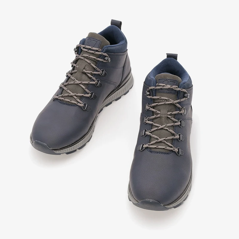מגף לגברים טבעוני בשילוב גוונים וסוליה אפורה, מגפיים אופנתיות וקלות מעוצבות בסטייל צעיר ונוח.