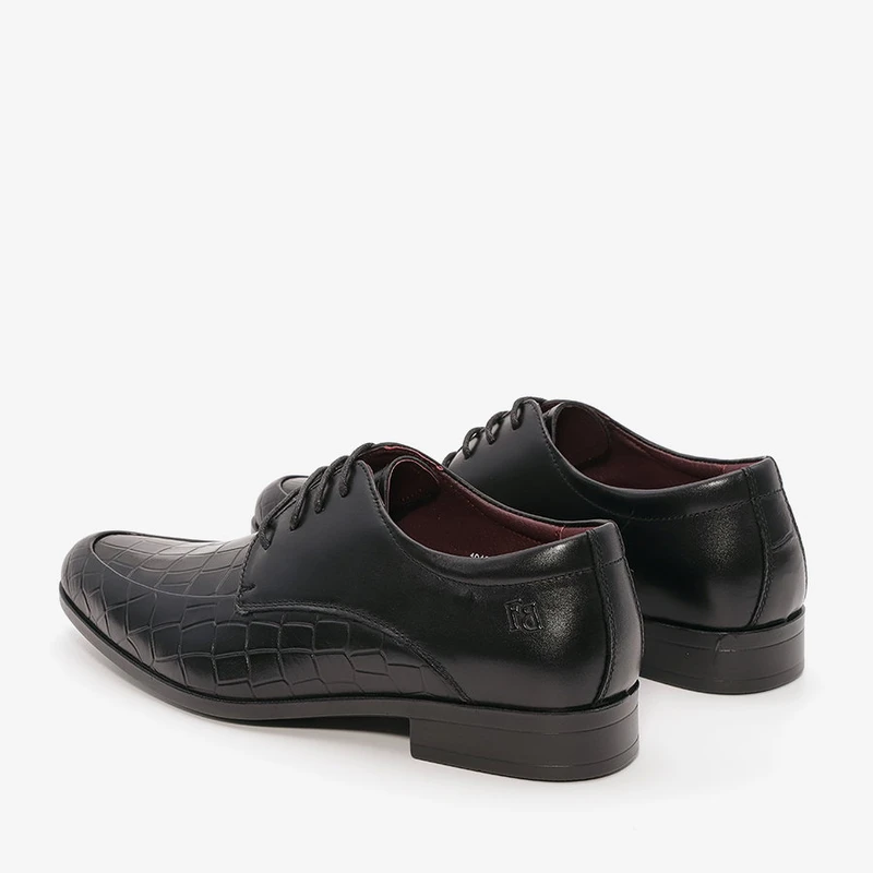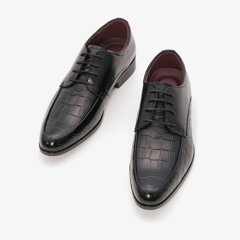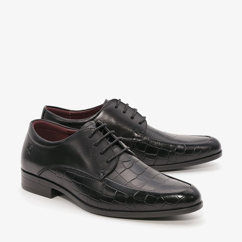 נעלי אלגנט לגבר עם שרוכים מעור בתוספת תפרים בקדמת הנעל ובשילוב עיטורי טקסטורה.