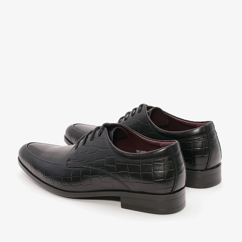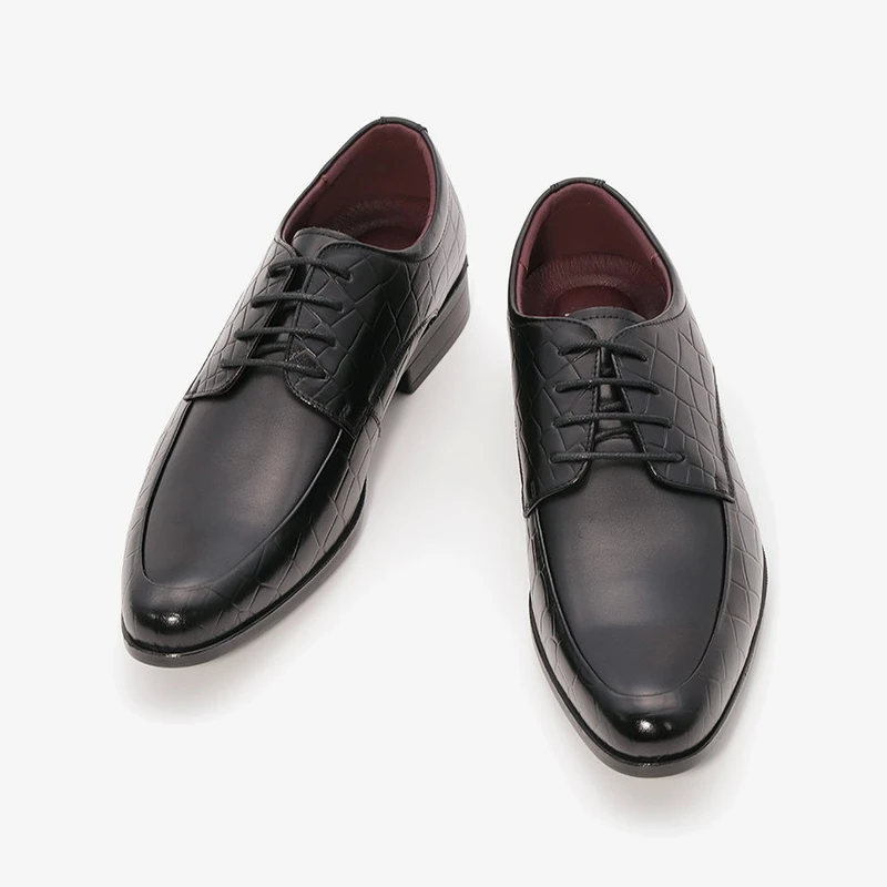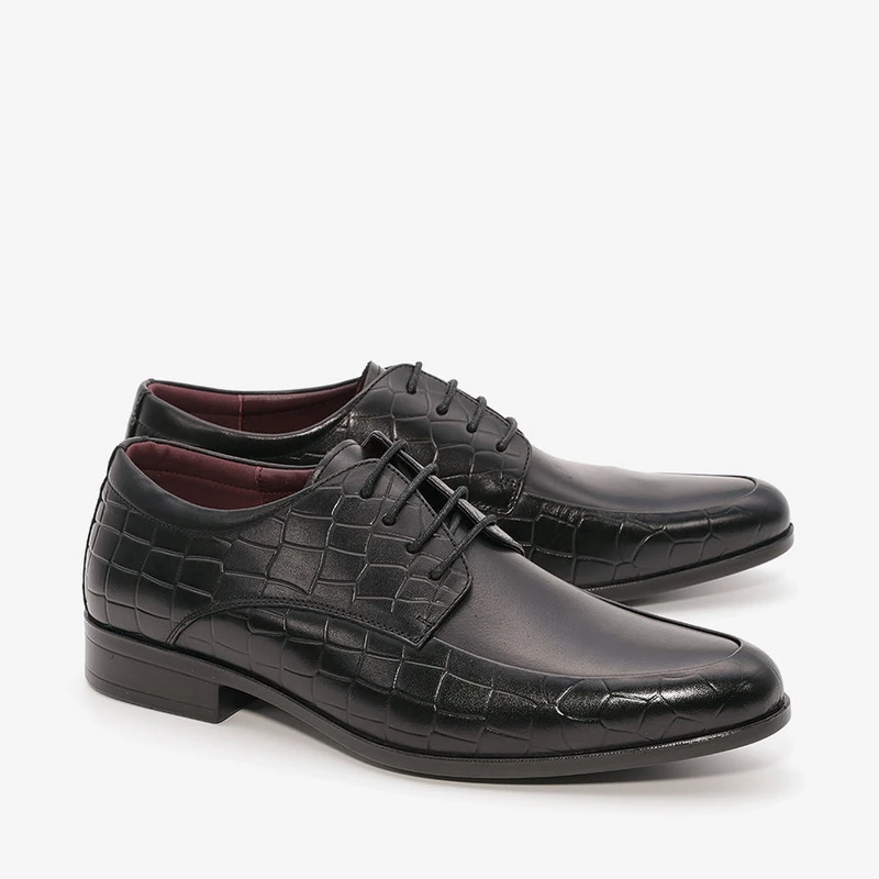 נעלי אלגנט לגבר עם שרוכים מעור בתוספת תפרים בקדמת הנעל ובשילוב עיטורי טקסטורה.