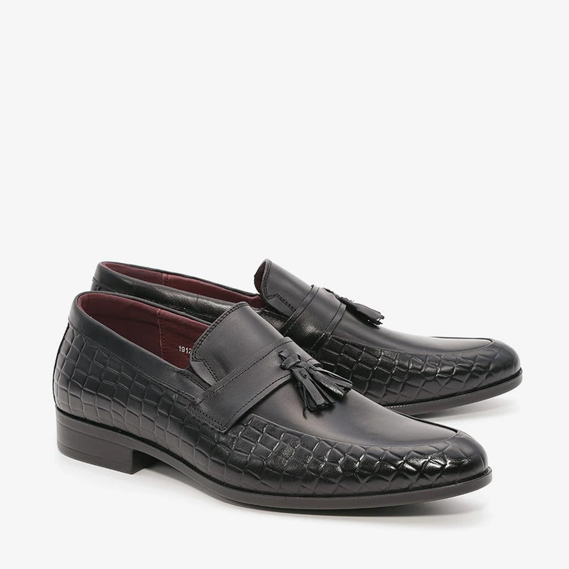נעלי אלגנט לגברים בעיצוב קלאסי עם טאץ איטלקי יוקרתי. הנעליים עשויות מעור משובח עם טקסטורה ייחודית ופרנזים מעוצבים.