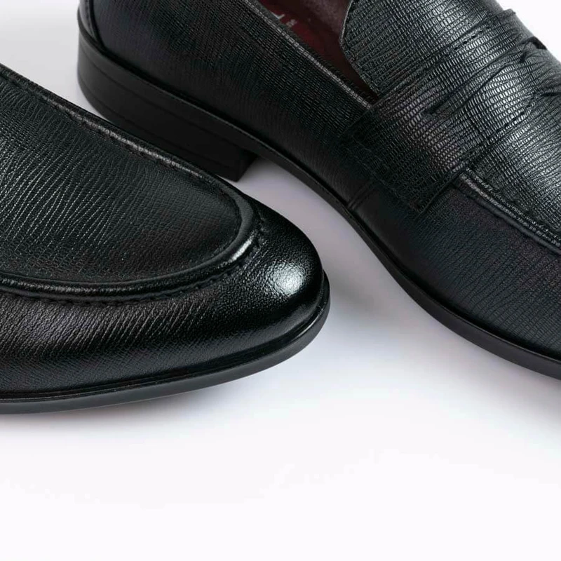 נעלי אלגנט מעור ועיטורים בסגנון איטלקי, שפיץ מעוגל ללא שרוכים עם תיפורים מסביב.