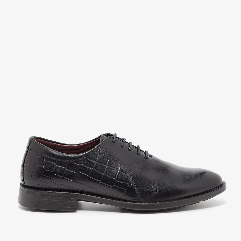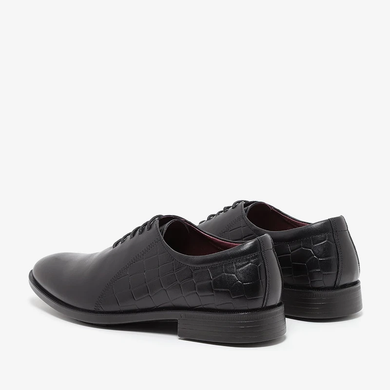 נעלי עור אלגנטיות בעיצוב חלק ללא תפרים ומרשים ביותר, עם טקסטורת תנין בחלק האחורי של הנעל.הנעליים מגיעות עם מדרס היברידי תומך לנוחות מירבית. סוליה גמישה והליכה קלה לאורך כל היום.