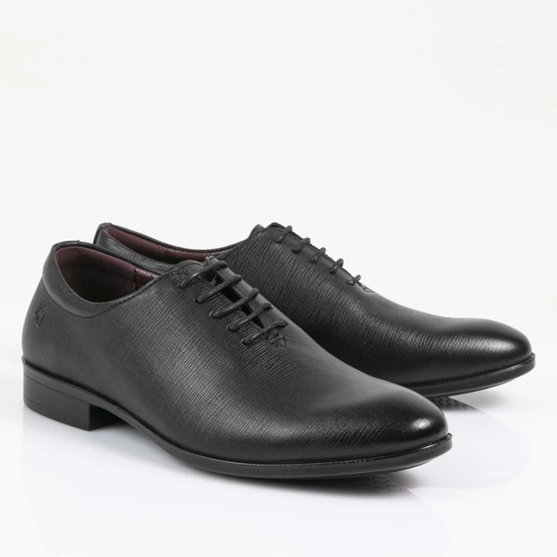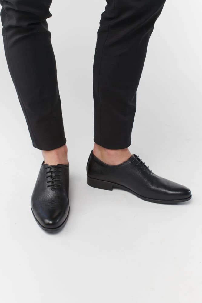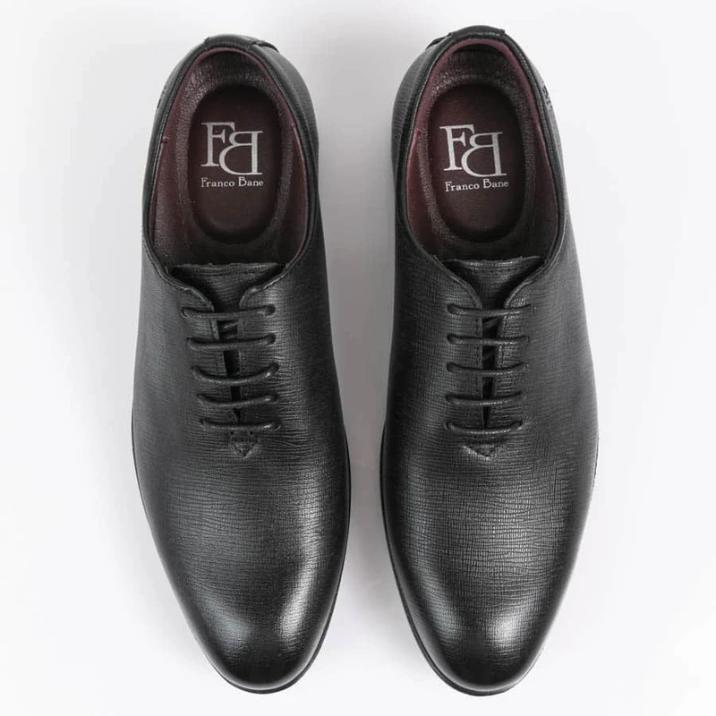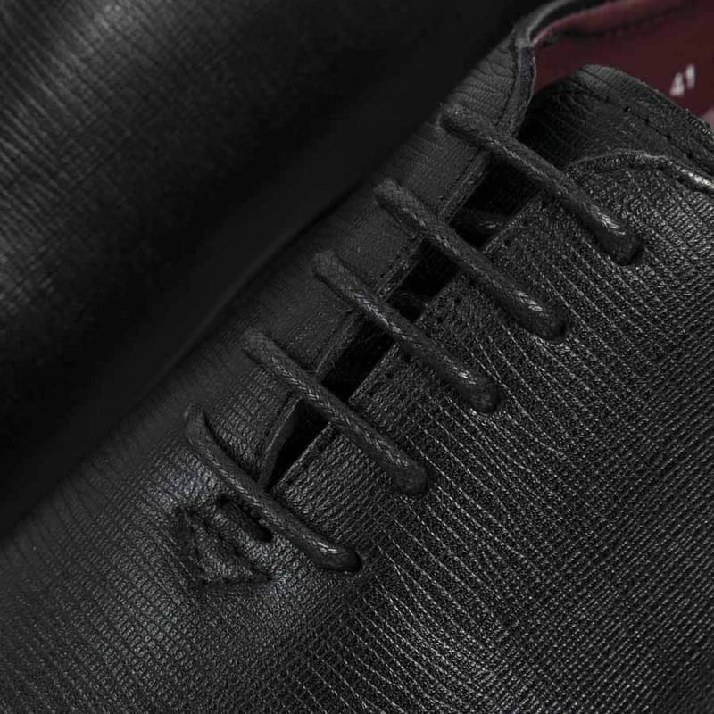 נעלי אלגנט מעור עם עיטורים בסגנון איטלקי ללא תפרים. חרטום מעוגל משולב שרוכים, בעלות מדרס “היברידי תומך”