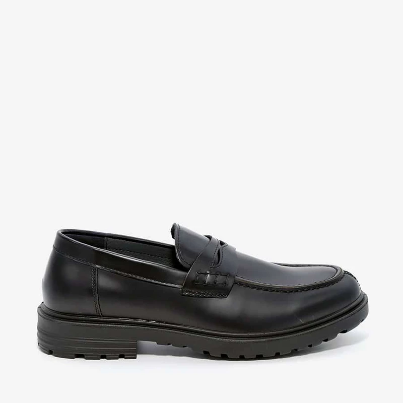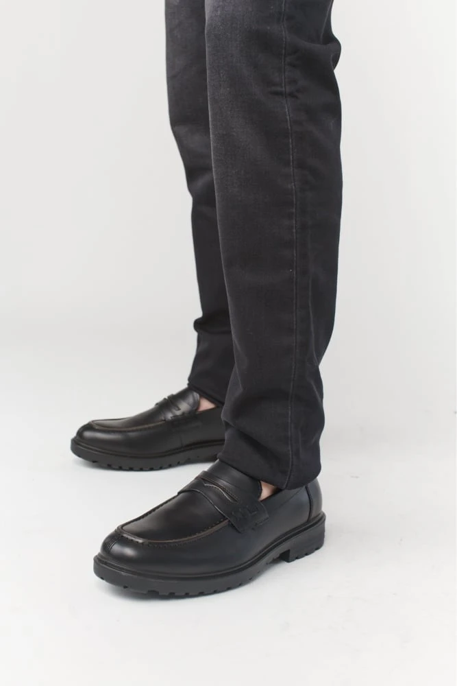 נעלי גברים בעיצוב אלגנטי בשחור עם סוליית טרקטור עמידה ומלאת סטייל. מושלם עם ג'ינס וגם עם חליפות.