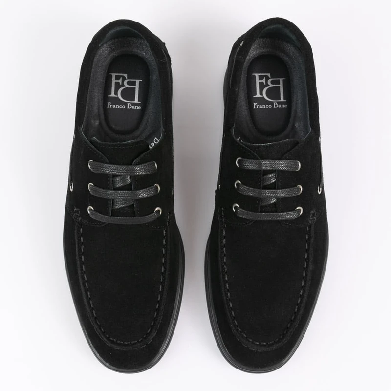 נעלי מוקסין לגברים 1111 שחור מבית Franco Bane – נוחות וסטייל בלתי מתפשרים. עשויות זמש איכותי, עם סוליה רכה ומדרס היברידי תומך. מושלמות לכל שעות היום, משדרות אלגנטיות וביטחון.