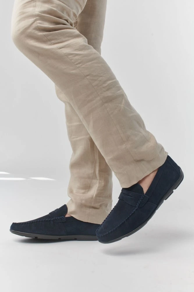 מוקסין במראה אופנתי בצבע בז' אבן או חום מעור זמש. הנעליים נוחות במיוחד – מקולקציית הקומפורט של פרנקו בן.