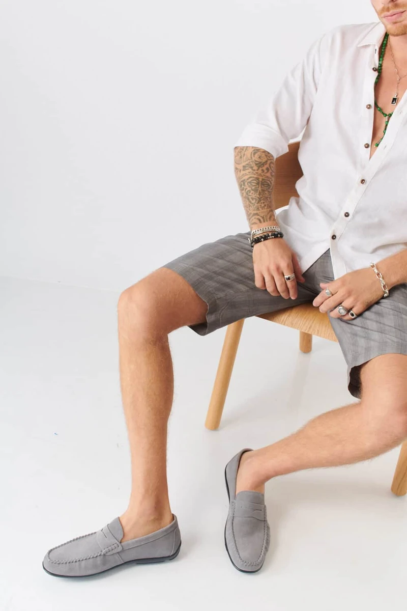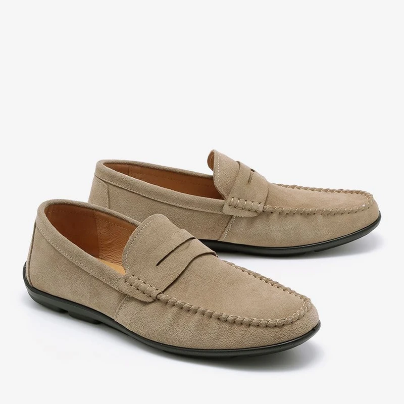 מוקסין במראה אופנתי בצבע בז' אבן או חום מעור זמש. הנעליים נוחות במיוחד – מקולקציית הקומפורט של פרנקו בן.