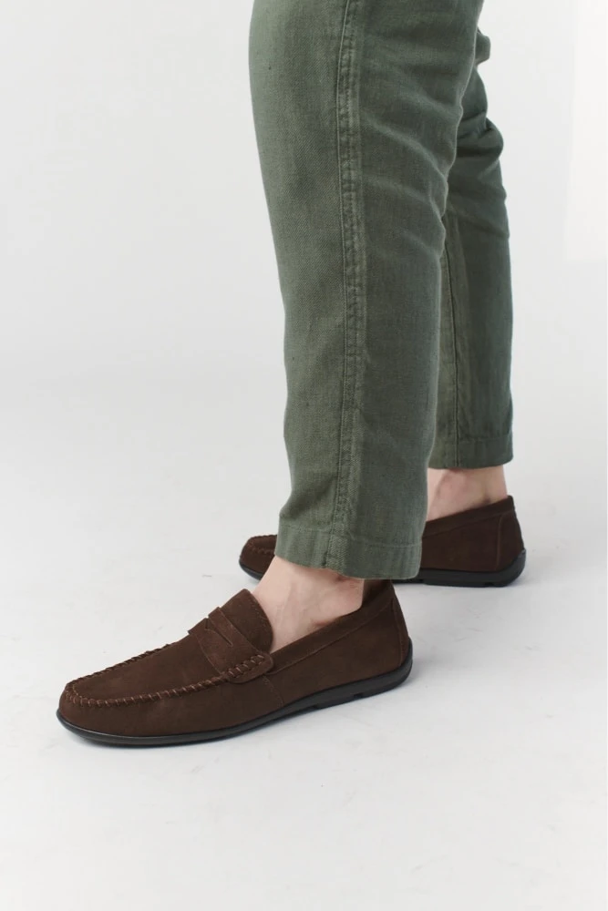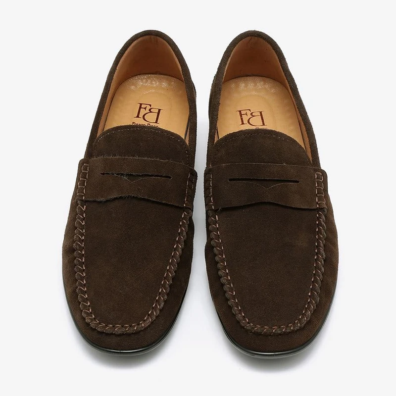 מוקסין במראה אופנתי בצבע בז' אבן או חום מעור זמש. הנעליים נוחות במיוחד – מקולקציית הקומפורט של פרנקו בן.
