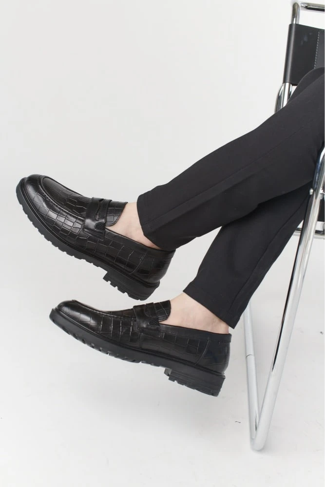 הנעלים עשויות עור בטקסטורת קרוקודיל