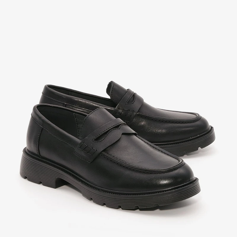 נעלי מוקסין אלגנטיות מעור עם סוליית טרקטור ועקב בגובה 2.5 ס"מ