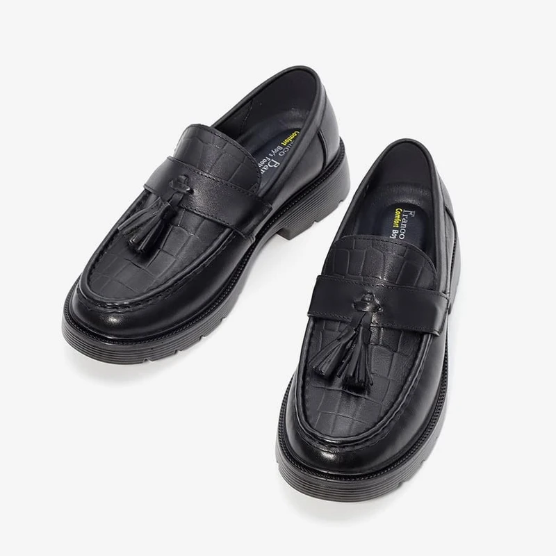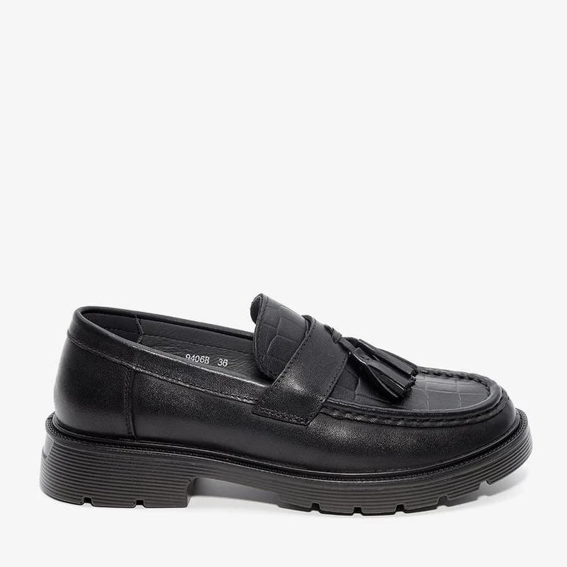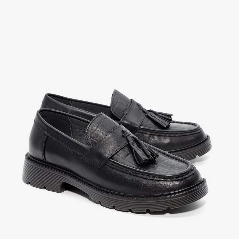 נעלי מוקסין אלגנטיות מעור בטקסטורת קרוקודיל וסוליית טרקטור בשילוב עקב בגובה 2.5 ס"מ