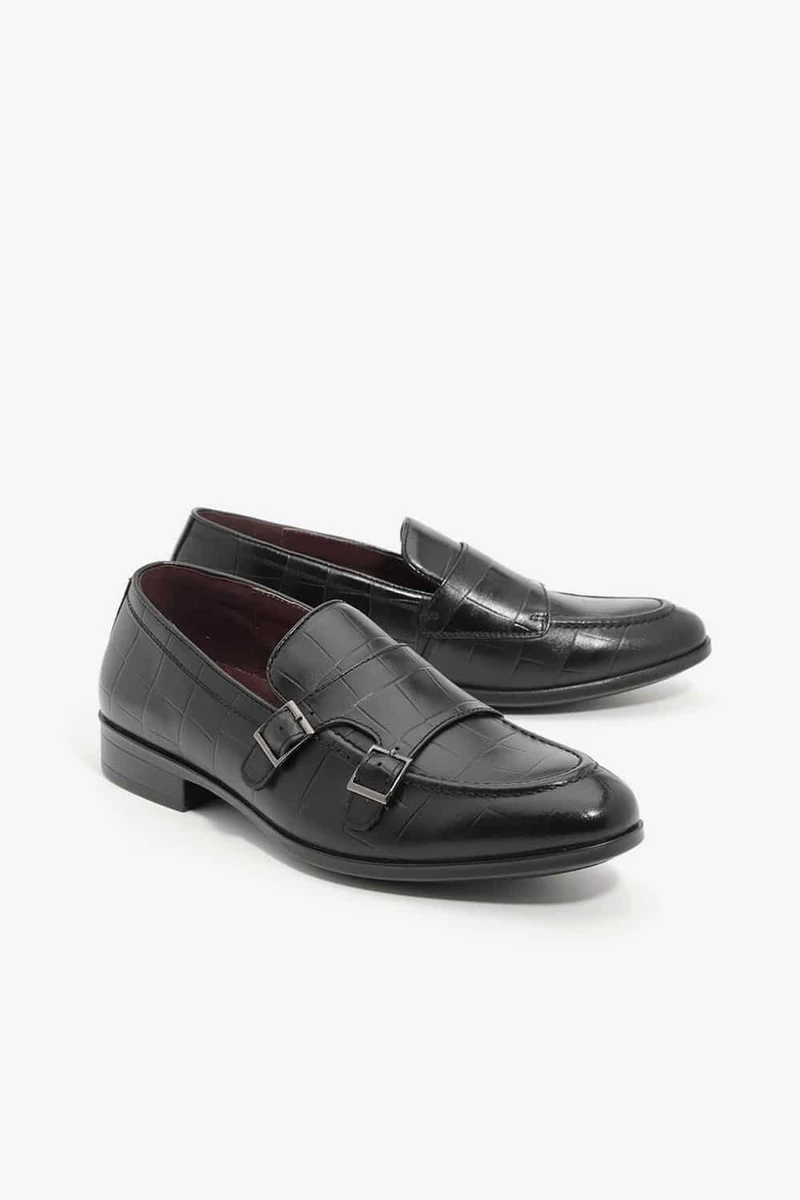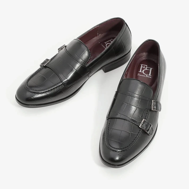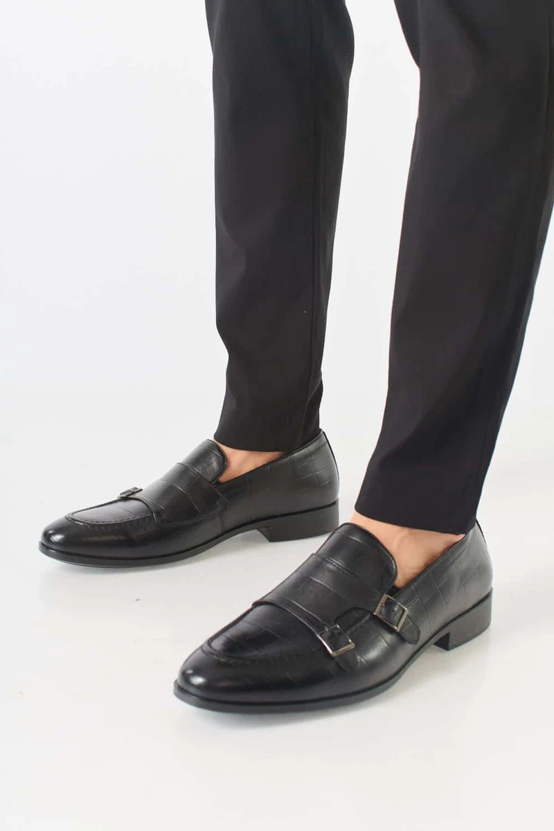 נעלי אלגנט סירה שפיץ מעוגל ללא שרוכים עם אבזמים.