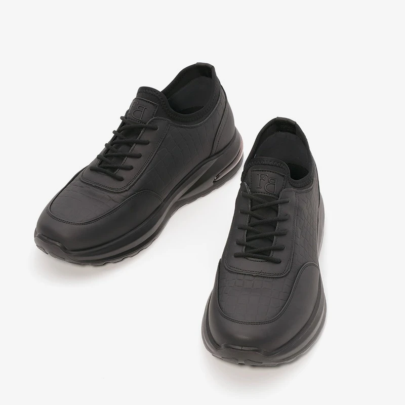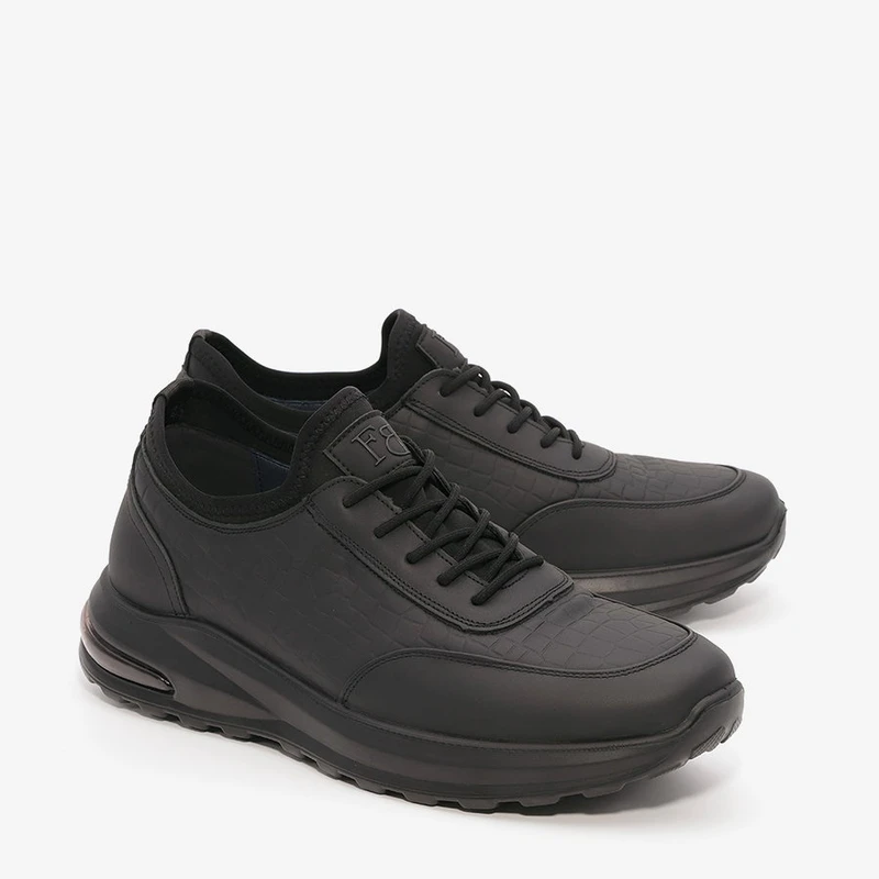 נעלי ספורט לגברים מעור משומן בשילוב שרוכים ואייר באג – כרית אוויר בעקב ומדרס "היברידי תומך".