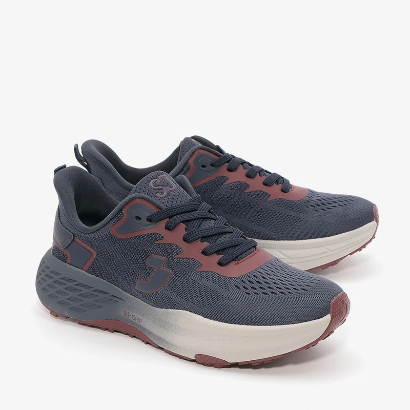 נעלי ספורט לגברים בשילוב גוונים כחול עמוק ובורדו, נעליים אופנתיות וקלות מעוצבות בסטייל מרשים המשלב צבעוניות ונוחות.