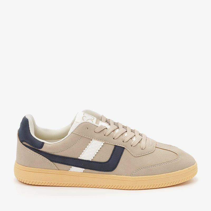 סניקרס לגברים בעיצוב אלגנטי ונקי – מושלמות לשדרוג כל הופעה. שילוב צבעים קלאסי של בז', כחול כהה וסוליה בגוון טבעי שהולך עם הכל.